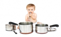 We all know babies mimic what we do, so if we're in the kitchen, they like getting into the pantry or the plastic containers cupboard. So why not make some toys from objects in the kitchen to keep your little one occupied while you get the chores done.