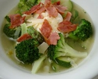 This is a really simple yet yummy soup that you can have on the table in minutes. Filled with lots of spring vegetables like broccoli, leek and zucchini, top with crispy bacon and parmesan for a delicious lunch or light dinner.